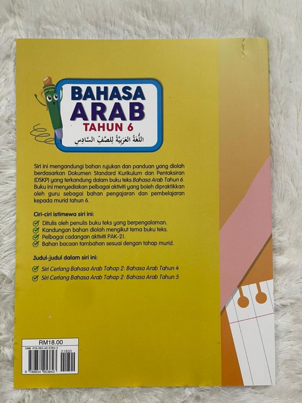 Siri ini mengandungi bahan rujukan dan panduan yang diolah berdasarkan Dokumen Standard Kurikulum dan Pentaksiran (DSKP) yang terkandung dalam buku teks Bahasa Arab Tahun 6.Buku ini menyediakan pelbagai aktiviti yang boleh dipraktikkan oleh guru sebagai bahan pengajaran dan pembelajaran kepada murid tahun 6. Ciri-ciri istimewa siri ini: Ditulis oleh penulis buku teks yang berpengalaman. Kandungan bahan diolah mengikut tema buku teks. Pelbagai cadangan aktiviti PAK-2I. Bahan bacaan tambahan sesuai dengan tahap murid.