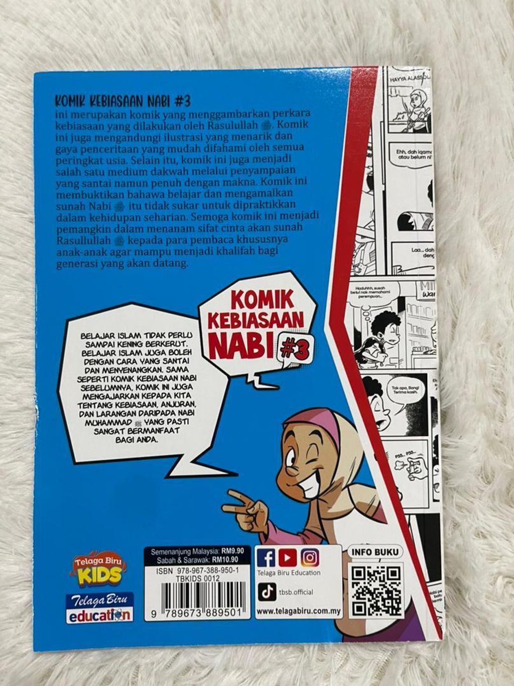 KOMIK KEBIASAAN NABI #3 ini merupakan komik yang menggambarkan perkara kebiasaan yang dilakukan oleh Rasulullah . Komik ini juga mengandungi ilustrasi yang menarik dan gaya penceritaan yang mudah difahami oleh semua peringkat usia. Selain itu, komik ini juga menjadi salah satu medium dakwah melalui penyampaian yang santai namun penuh dengan makna. Komik ini membuktikan bahawa belajar dan mengamalkan sunah Nabi itu tidak sukar untuk dipraktikkan dalam kehidupan seharian. Semoga komik ini menjadi pemangkin dalam menanam sifat cinta akan sunah Rasullullah kepada para pembaca khususnya anak-anak agar mampu menjadi khalifah bagi generasi yang akan datang.