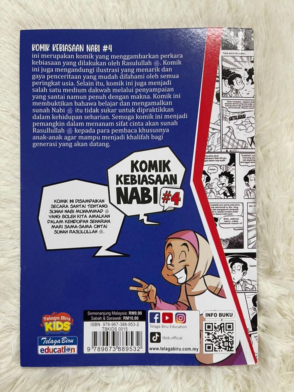 KOMIK KEBIASAAN NABI #4 ini merupakan komik yang menggambarkan perkara kebiasaan yang dilakukan oleh Rasulullah SAW. Komik ini juga mengandungi ilustrasi yang menarik dan gaya penceritaan yang mudah difahami oleh semua peringkat usia. Selain itu, komik ini juga menjadi salah satu medium dakwah melalui penyampaian yang santai namun penuh dengan makna. Komik ini membuktikan bahawa belajar dan mengamalkan sunah Nabi itu tidak sukar untuk dipraktikkan dalam kehidupan seharian. Semoga komik ini menjadi pemangkin dalam menanam sifat cinta akan sunah Rasullullah SAW kepada para pembaca khususnya anak-anak agar mampu menjadi khalifah bagi generasi yang akan datang.