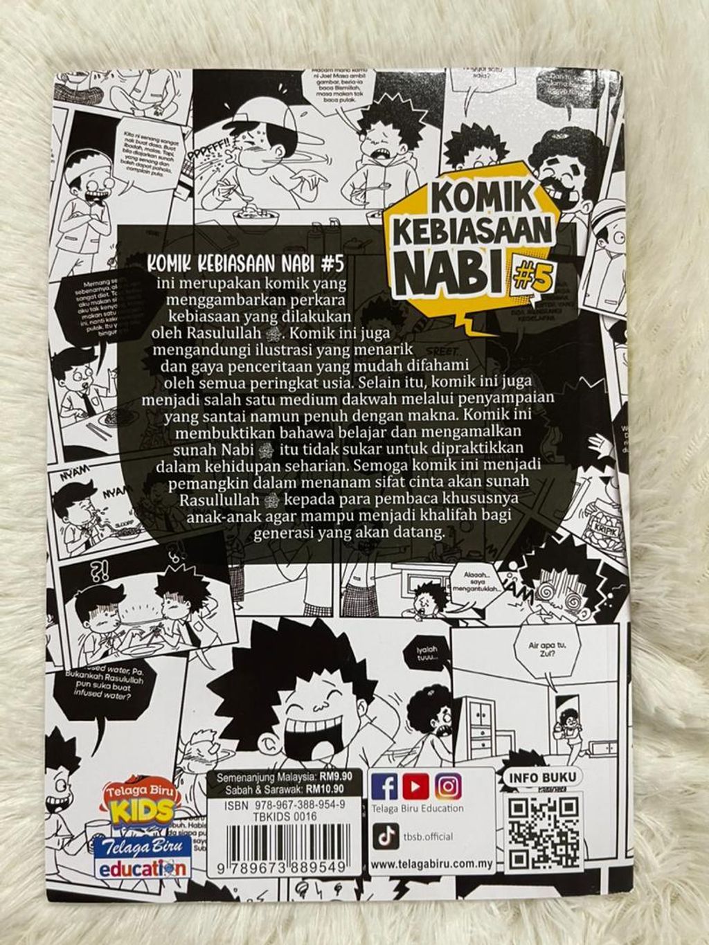 KOMIK KEBIASAAN NABI #5 ini merupakan komik yang menggambarkan perkara kebiasaan yang dilakukan oleh Rasulullah SAW . Komik ini juga mengandungi ilustrasi yang menarik dan gaya penceritaan yang mudah difahami oleh semua peringkat usia. Selain itu, komik ini juga menjadi salah satu medium dakwah melalui penyampaian yang santai namun penuh dengan makna. Komik ini membuktikan bahawa belajar dan mengamalkan sunah Nabi itu tidak sukar untuk dipraktikkan dalam kehidupan seharian. Semoga komik ini menjadi pemangkin dalam menanam sifat cinta akan sunah Rasullullah SAW kepada para pembaca khususnya anak-anak agar mampu menjadi khalifah bagi generasi yang akan datang.