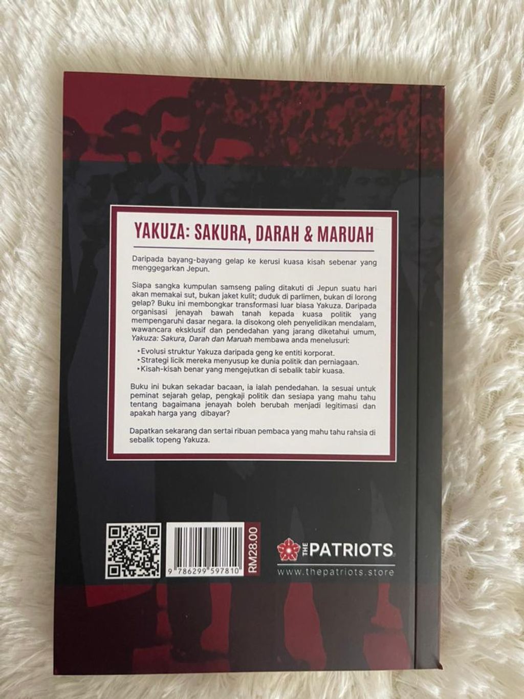 Siapa sangka kumpulan samseng paling ditakuti di Jepun suatu hari akan memakai sut, bukan jaket kulit; duduk di parlimen, bukan di lorong gelap? Buku ini membongkar transformasi luar biasa Yakuza. Daripada organisasi jenayah bawah tanah kepada kuasa politik yang mempengaruhi dasar negara. la disokong oleh penyelidikan mendalam, wawancara eksklusif dan pendedahan yang jarang diketahui umum, Yakuza: Sakura, Darah dan Maruah membawa anda menelusuri: