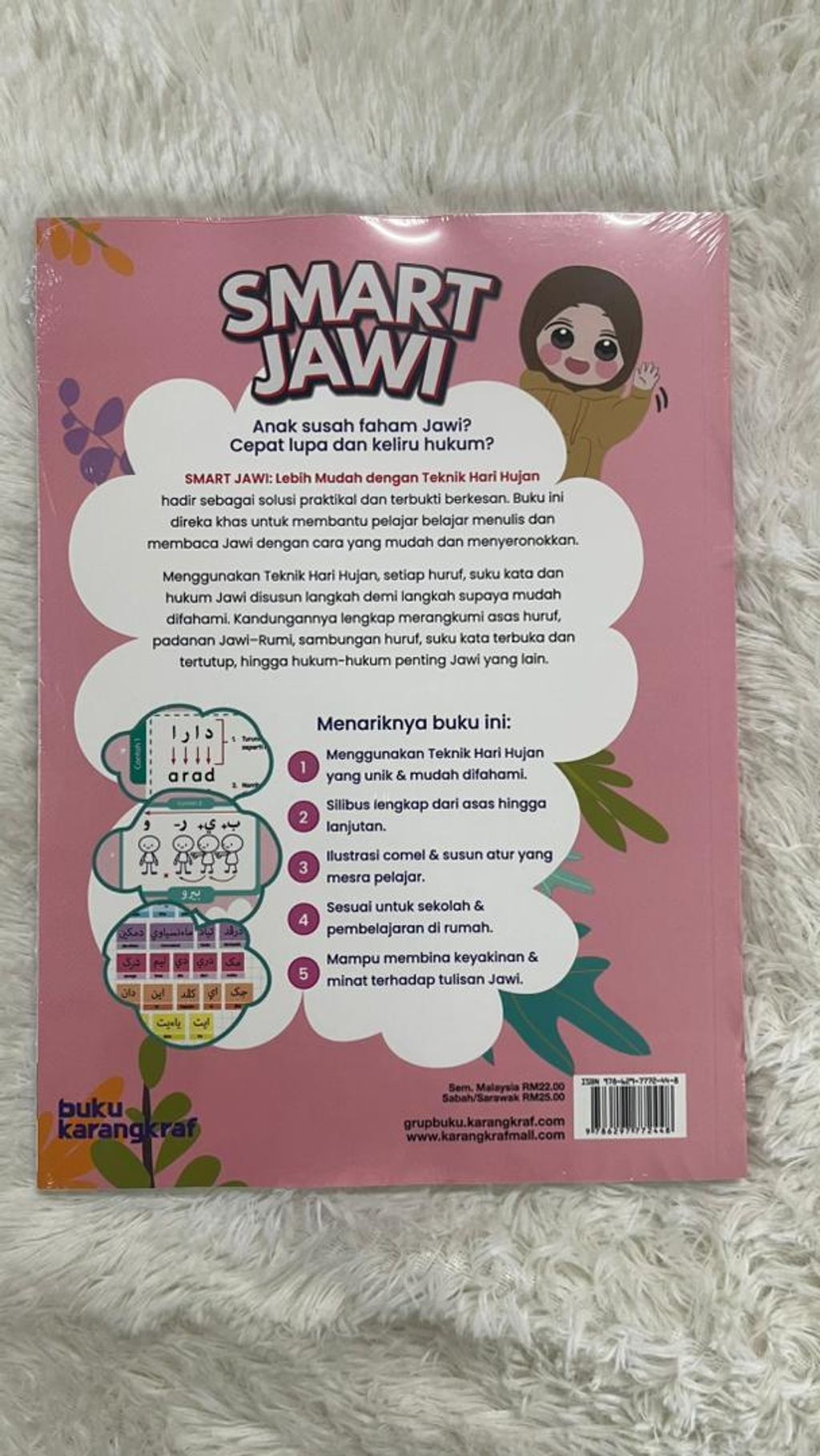 SMART JAWI: Lebih Mudah dengan Teknik Hari Hujan hadir sebagai solusi praktikal dan terbukti berkesan. Buku ini direka khas untuk membantu pelajar belajar menulis dan membaca Jawi dengan cara yang mudah dan menyeronokkan.