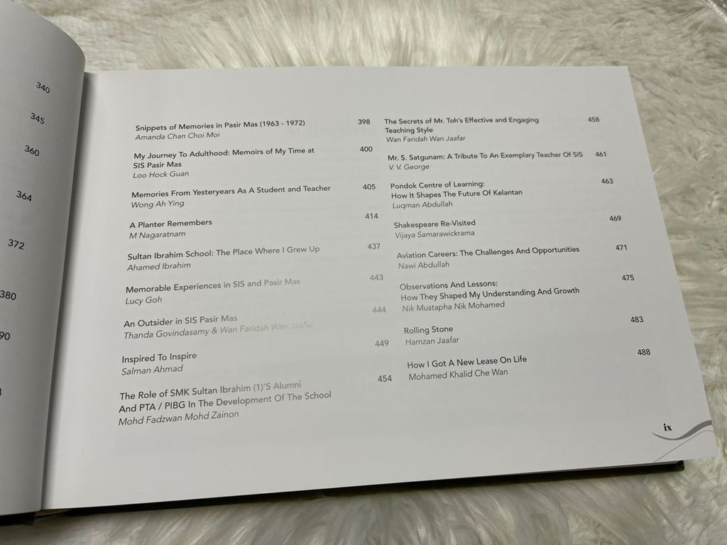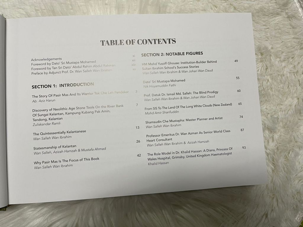Buku mewah, 565 muka surat. Berkulit keras. Penuh warna warni mengenai Pasir Mas. Ditulis oleh sekumpulan lebih 60 oran penulis yang berasal dari Pasir Mas, Kelantan.Ia merangkumi pelbagai topik dan aspek mengenai Pasir Mas.